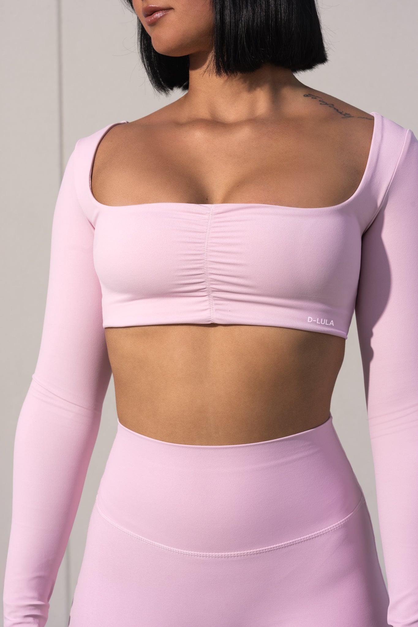 The Luxe Motion Long Sleeve Crop is your new go-to for training, lounging, and everything in between. With its sleek square neckline and ruched front detail, it blends feminine style with performance support.